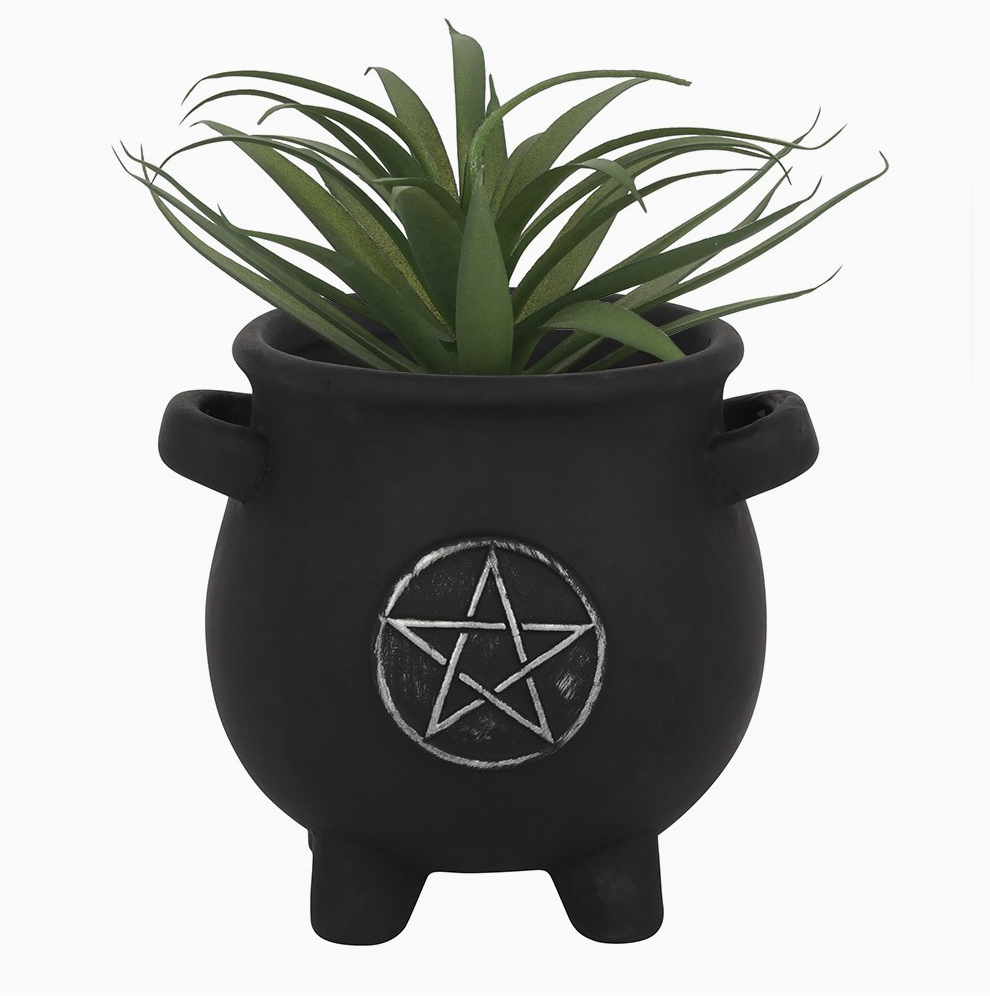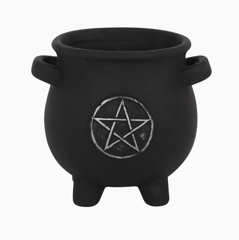 Transform your garden into a gothic paradise with our Gothic Pentagram Cauldron Plant Pot. Carefully crafted with a pentagram design, this cauldron will add a touch of magic to your outdoor space. Perfect for displaying your favorite plants and flowers. It makes a spooky spot to store pencils, utensils, wands, whatever! Made of weighty terra cotta, it's versatile to whatever you want to use it for.