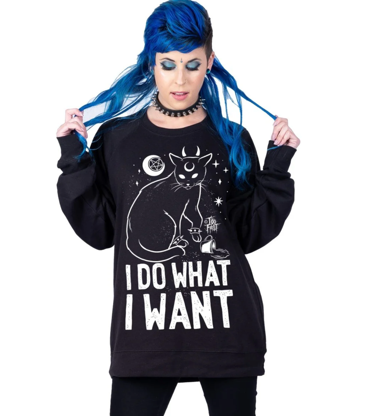 We all know that cats have that IDGAF attitude, and we love them for it. Channel their chaotic energy with this cool sweatshirt! Isn't it the cat's meow?