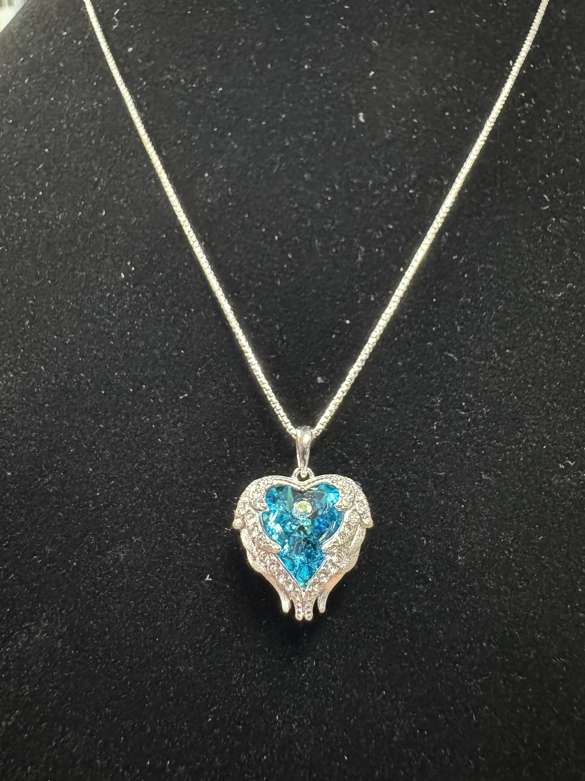 Blue Crystal Stone Wing Heart Necklace- S925