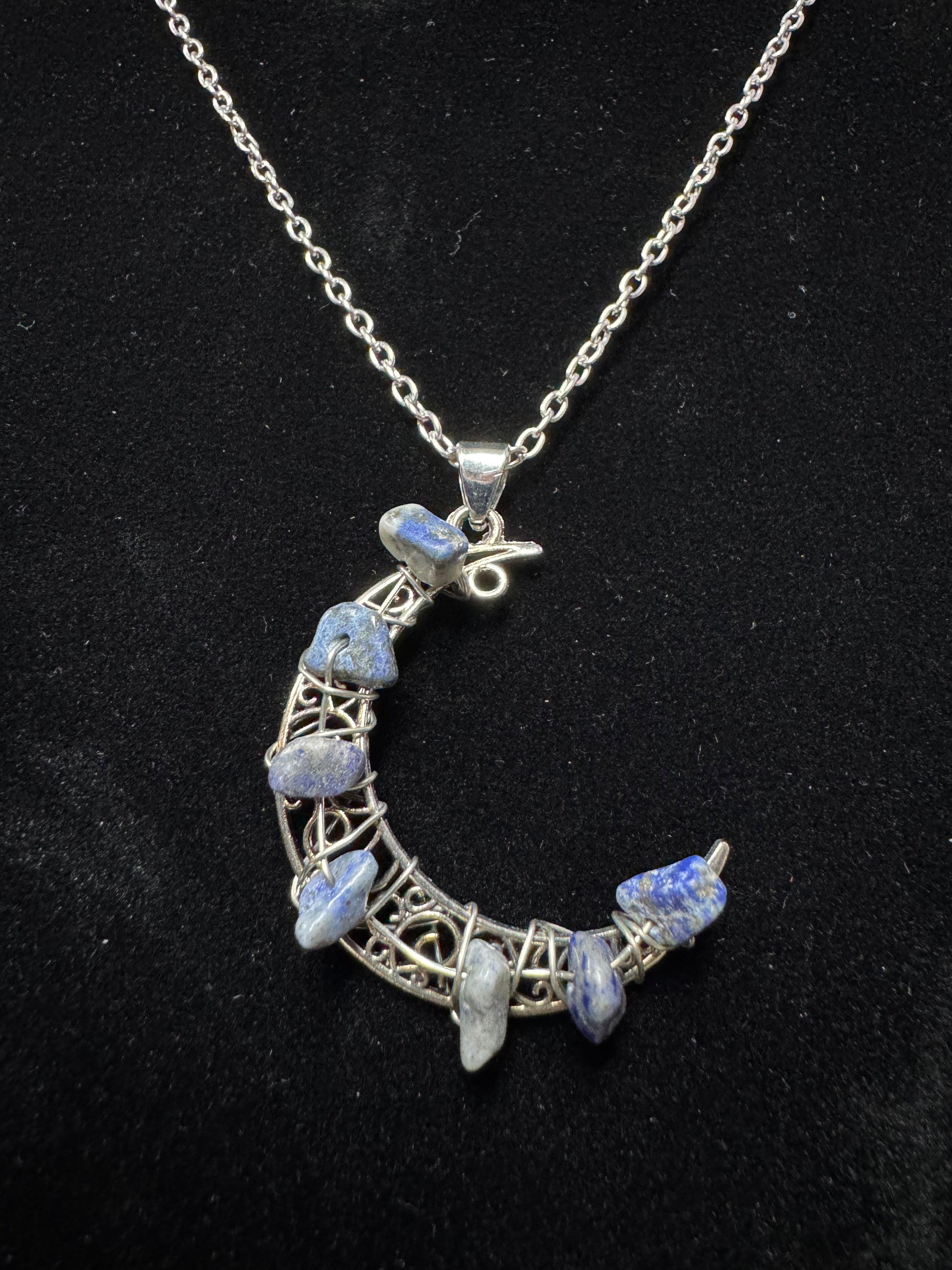 Natural Stone Chips Moon Necklaces- Multiple Stone Options