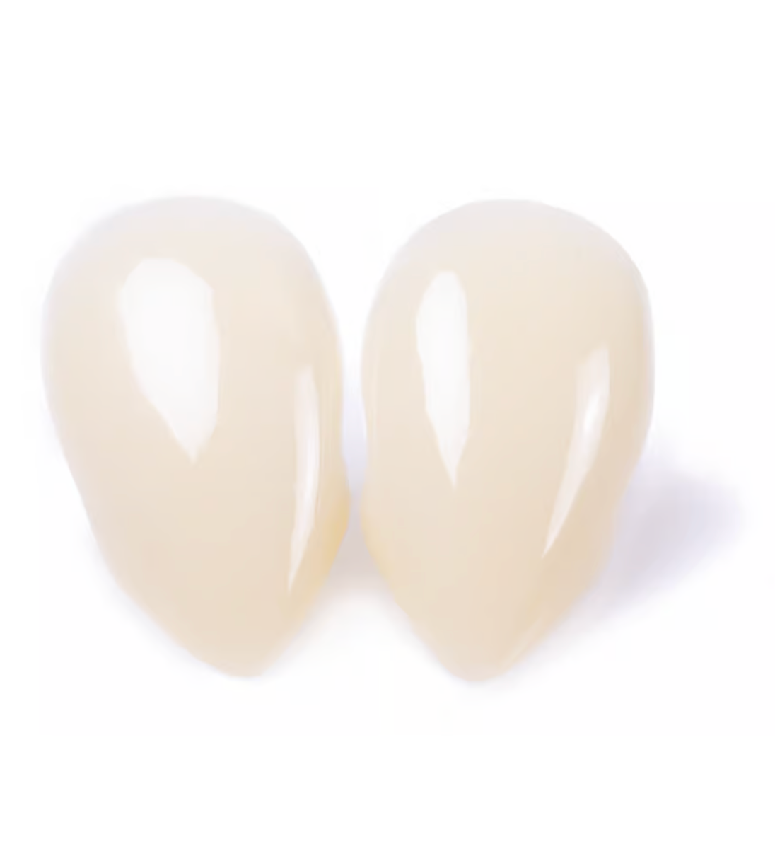 On-the-spot customizing is fast, easy, and only needs to be done once. Everything you need is included, no additional utensils and no boiling water necessary. Once customized, fangs fit with a unique mold of your tooth inside that allows you to snap them on or off, quickly and easily (no thermoplastic partial plate around adjacent teeth).