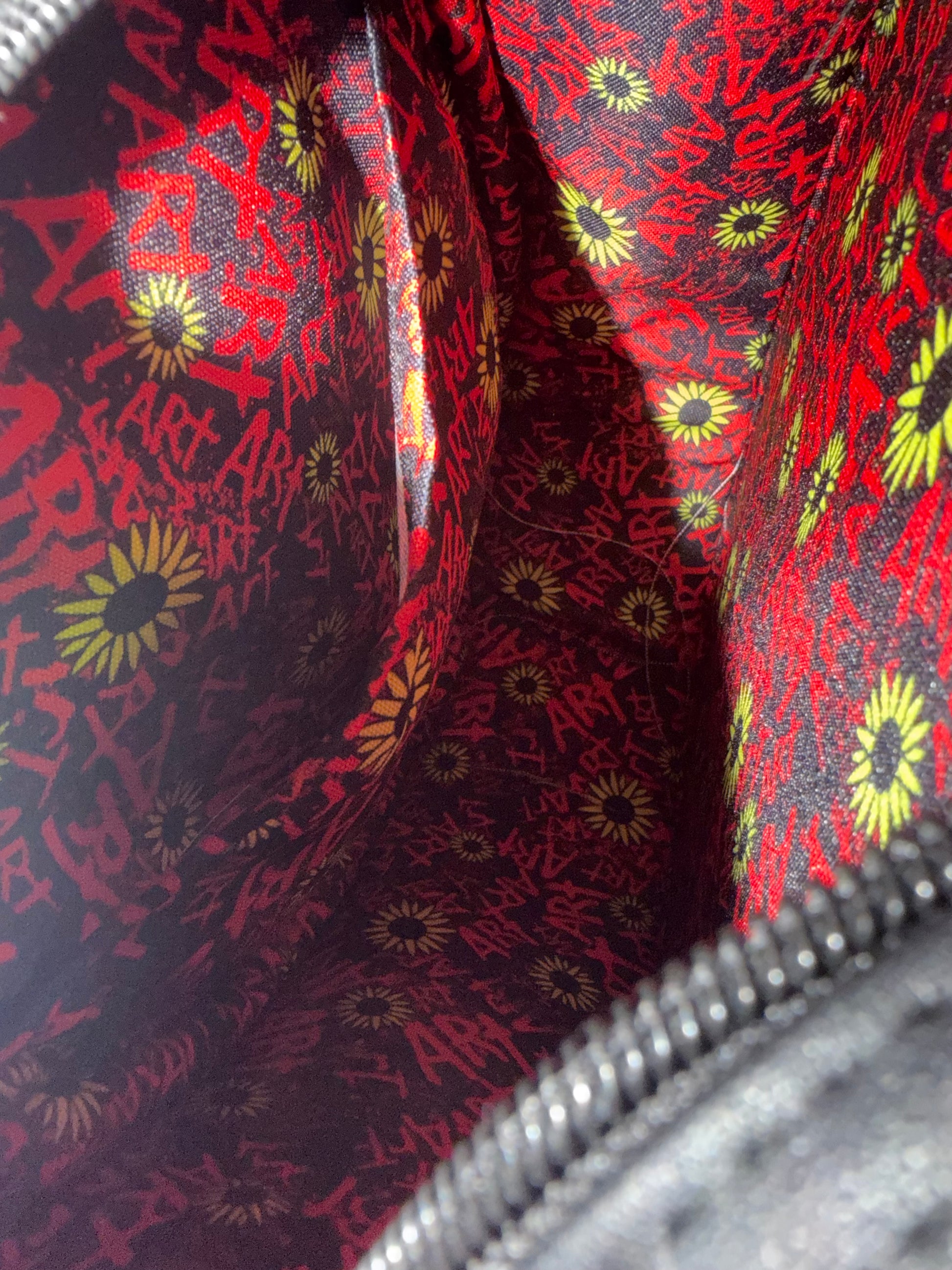 Unzip the top using the custom flower zipper pull to reveal a soft inner lining printed with an exclusive Art the Clown pattern. Inside, there’s a large opening with a side slip pocket to keep your essentials organized while you're on the go or on the run.