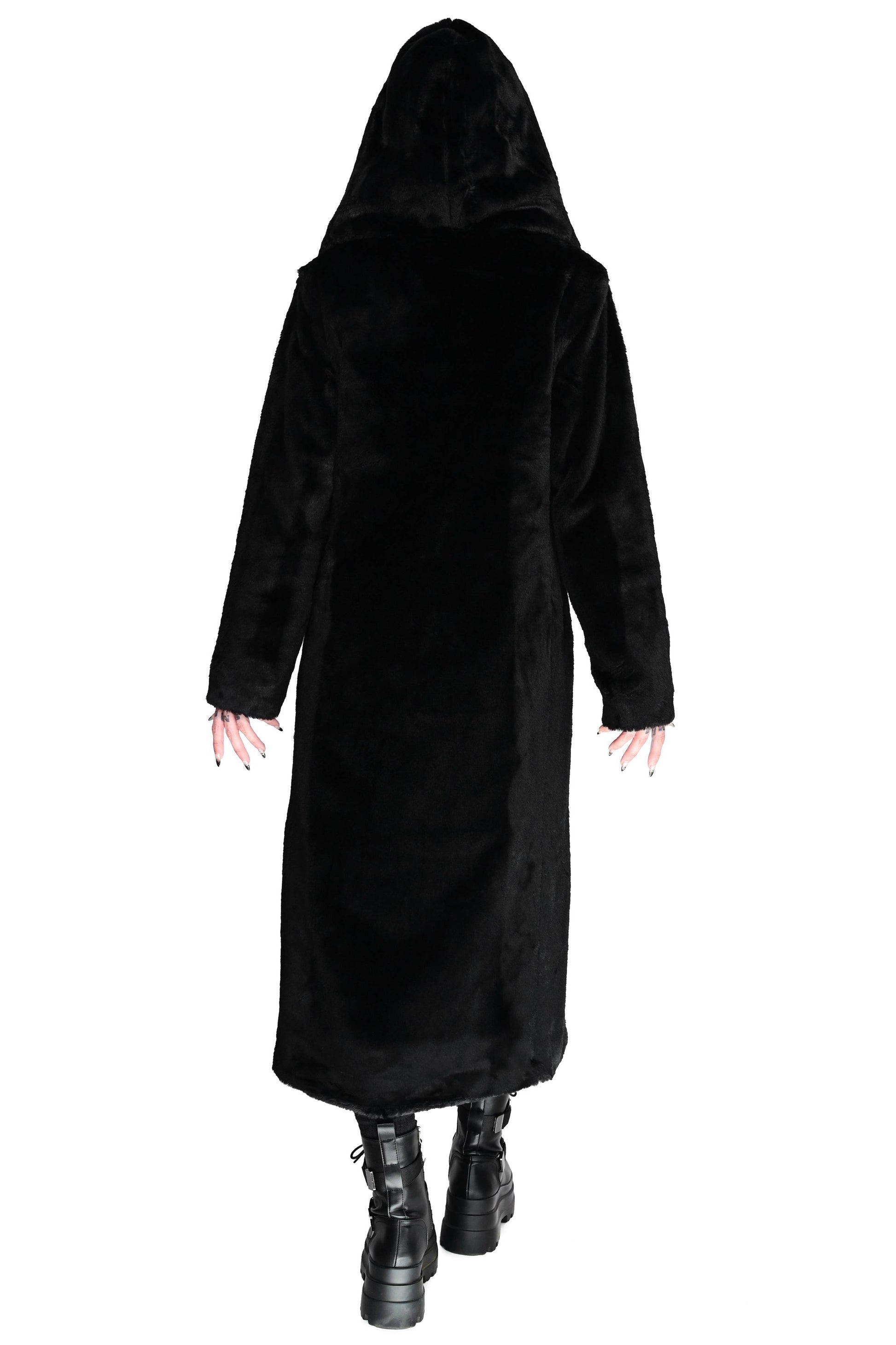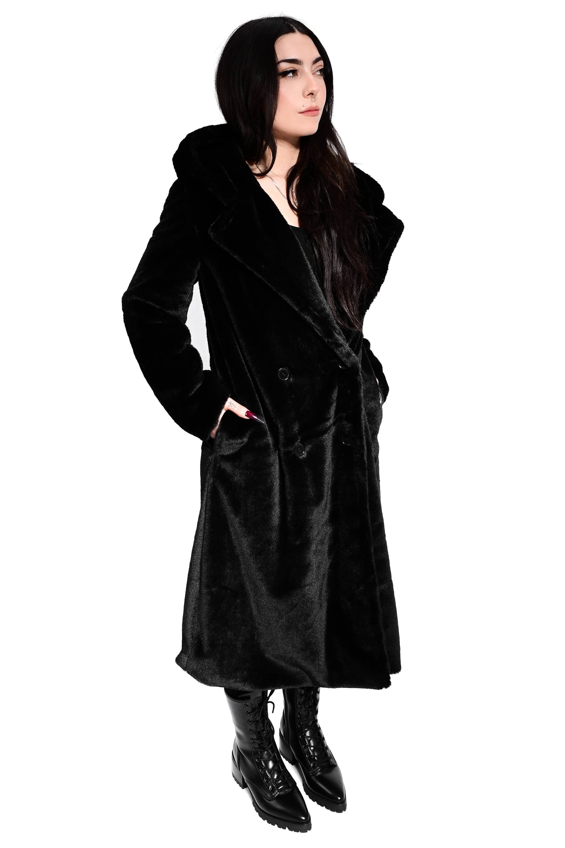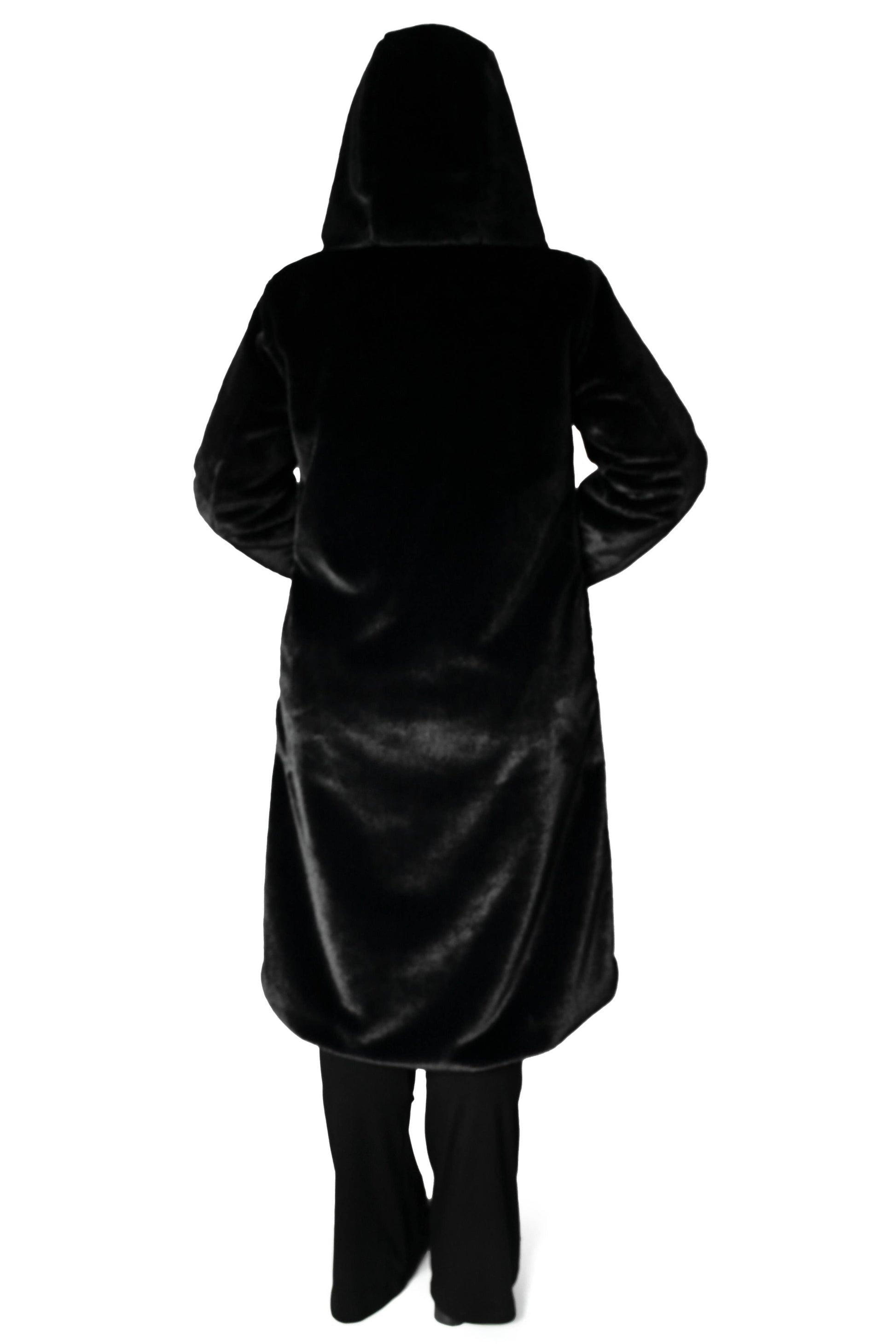 Soft, hooded faux fur jacket with two front buttons to keep it closed. This jacket is so cozy!!