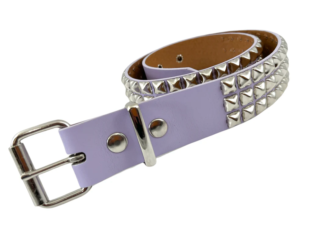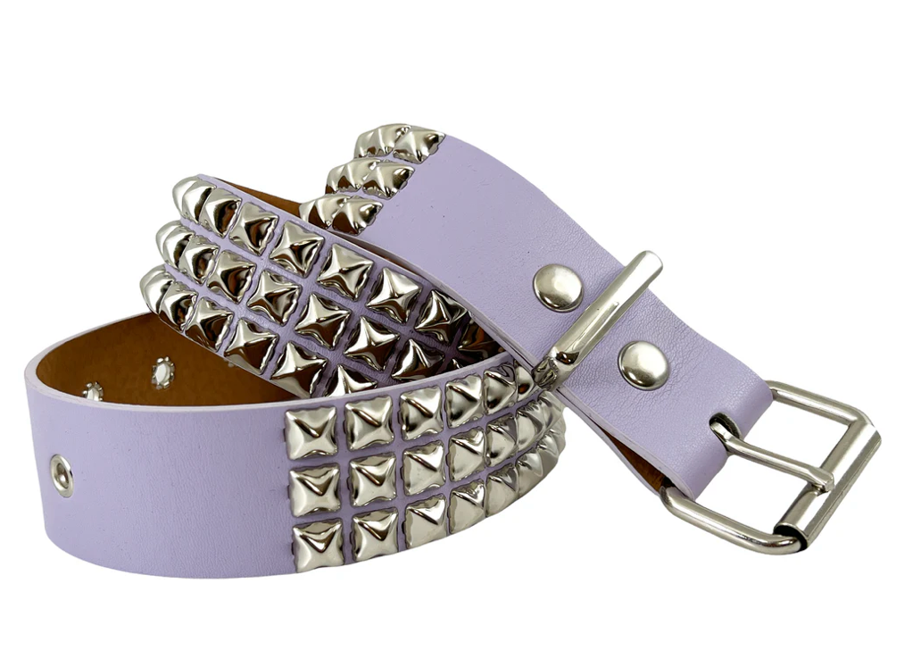 Vegan Leather 3-Row Pyramid Stud Belts — Matte Purple